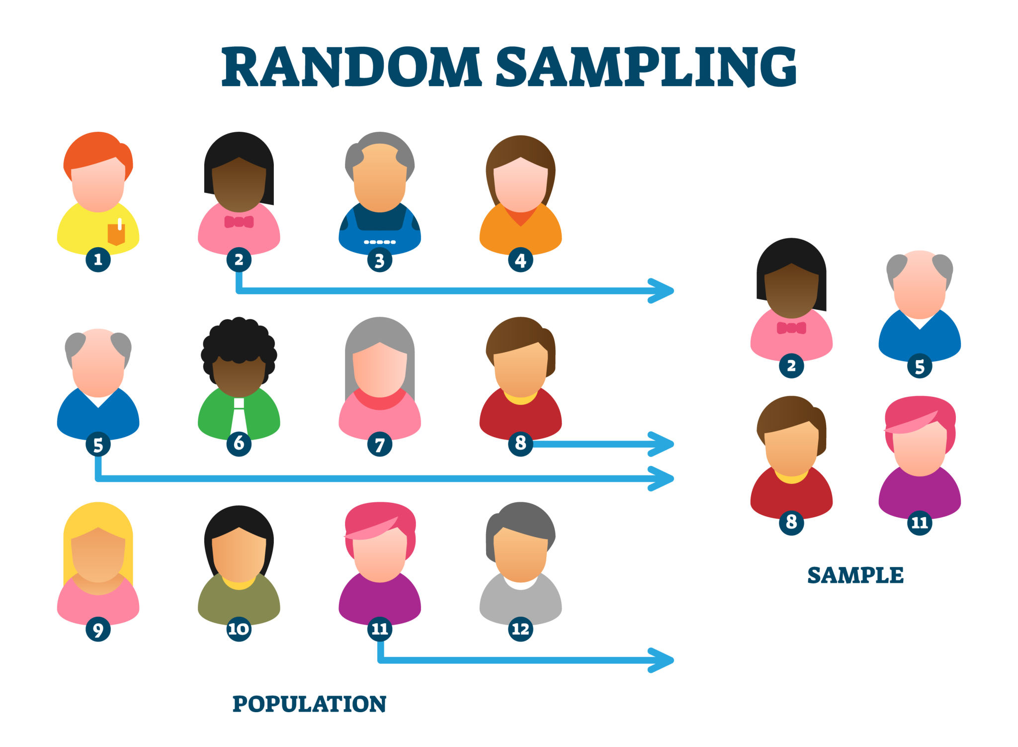 A sample is a smaller group selected from the population that is studied in place of the whole population. Researchers then use the findings from the sample to draw conclusions about the population.